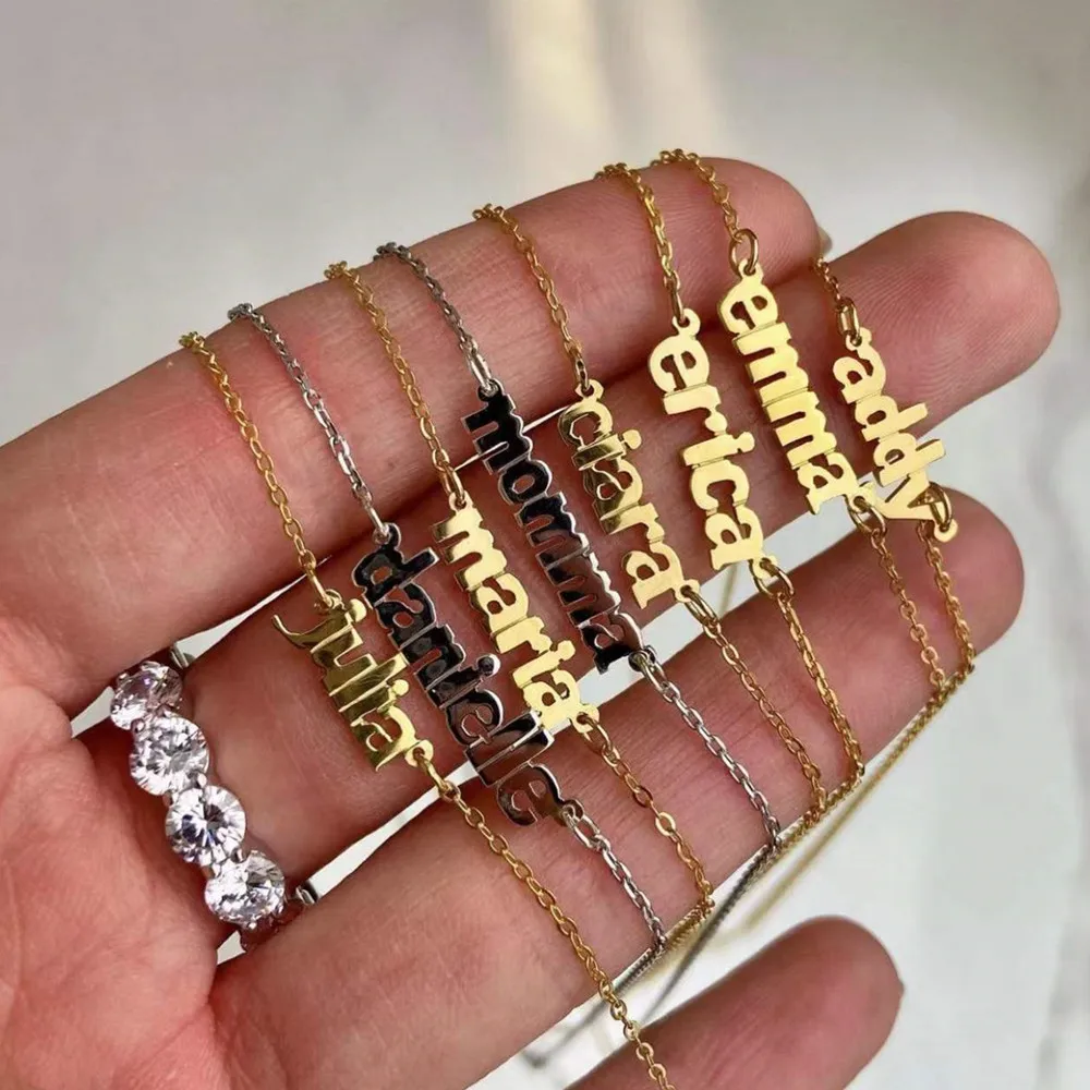 Stainless Steel Customized Name Necklaces for Women Personalized Necklace Old English Letter Choker Pendant BFF Jewelry Custom